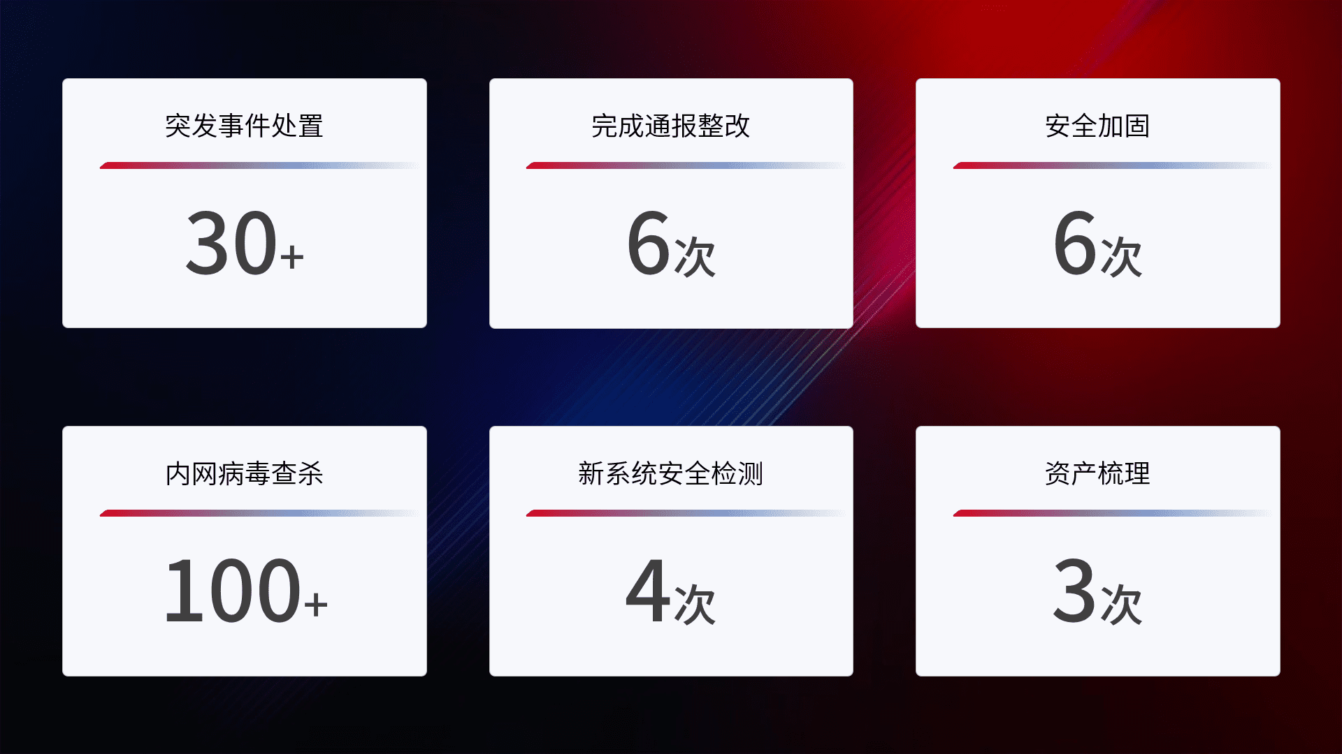 网络安全加固与风险管理:通过技术加固手段,,,,如加强区域隔离,,缩减攻击内网横向移动的范围;优化现有网络安全管理制度,,,降低网络威胁暴露面,,减少被黑客攻击的可能性。。